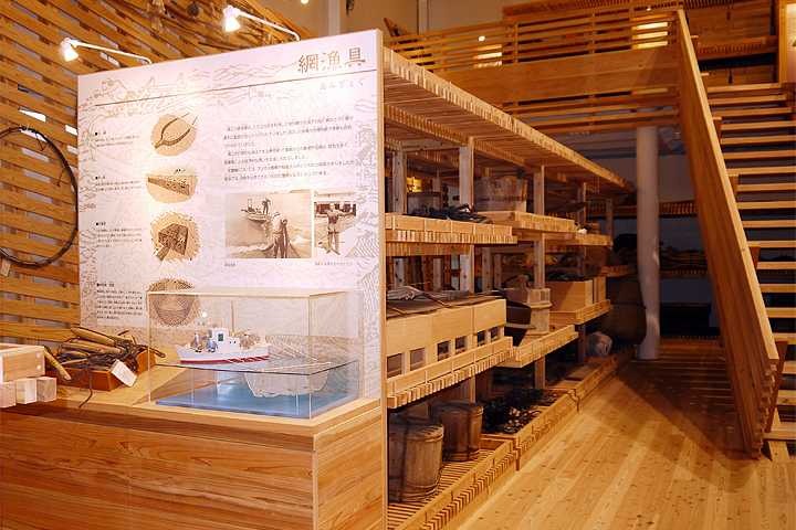 古くから漁業が盛んであった豊後水道の沿岸で使用されていきた漁具や船舶など、多くの資料を展示しています。杉の香ただよう館内には、「網舟」「チャンコ船」をはじめ、櫓・舵・櫂などおよそ26,000点を収蔵・展示。古来から営まれている漁業の歴史を体感していただけます。